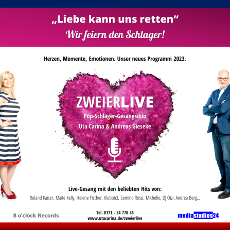 Uta Carina und Andrea Gieseke bilden (seit 2017) das Popschlager-Duo ZWEIERLIVE. Sie begeistern das Publikum bundesweit und in Österreich.